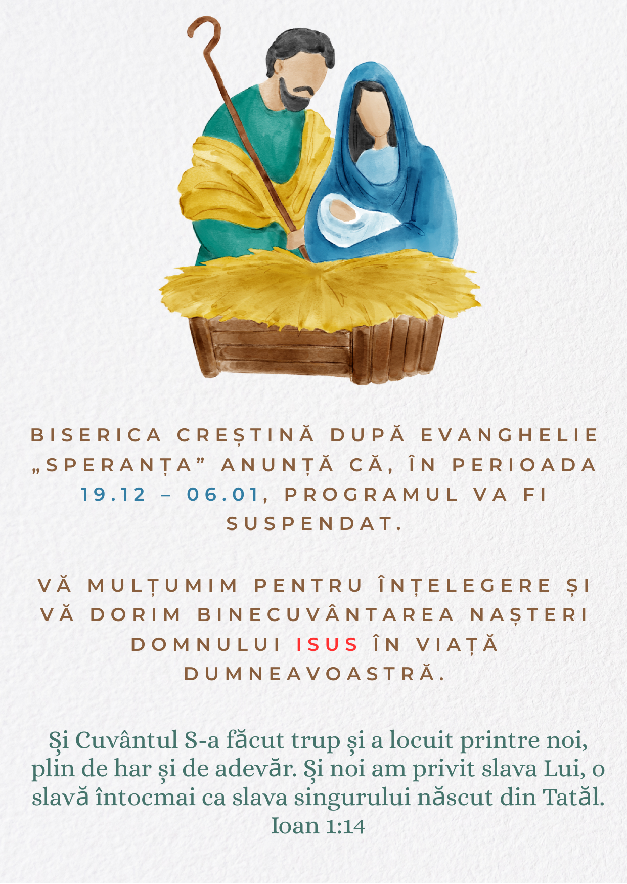 Vă așteptăm în fiecare Duminică începând cu ora 10 la serviciul de dimineață!
