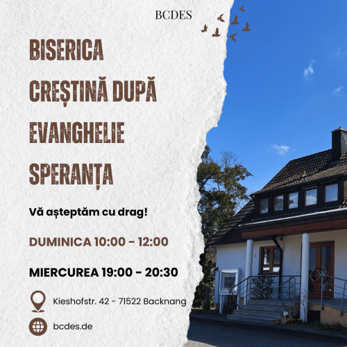 Vă așteptăm în fiecare Duminică începând cu ora 10 la serviciul de dimineață!